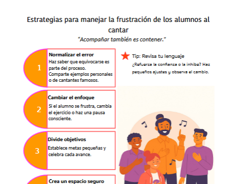 Consejos prácticos para apoyar a tus estudiantes cuando enfrentan bloqueos emocionales, desmotivación o sensación de estancamiento en su proceso vocal. Una herramienta pensada para fortalecer el acompañamiento humano y pedagógico dentro de la clase de canto.