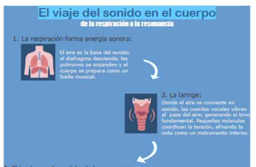 Un recorrido visual que muestra cómo el sonido nace, se amplifica y se percibe dentro del cuerpo durante el canto.
